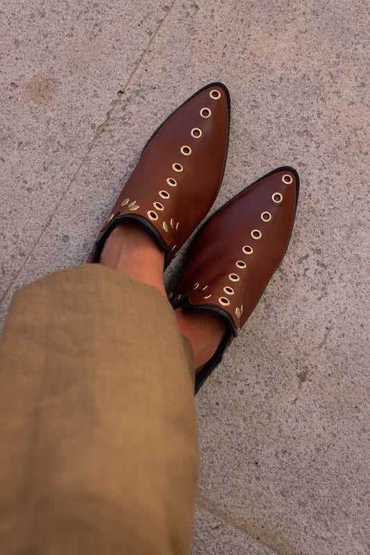 Pointed Toe Metal Eyelets Decor Dark Brown Ankle Boots