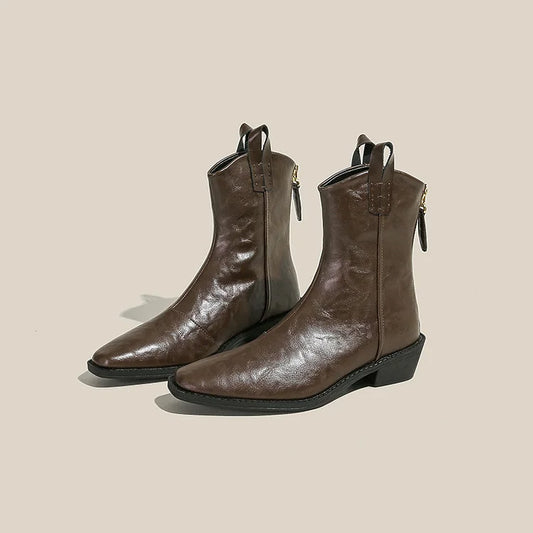 Solid Color Square Toe Chunky Heel Camel Ankle Boots [Pre Order]