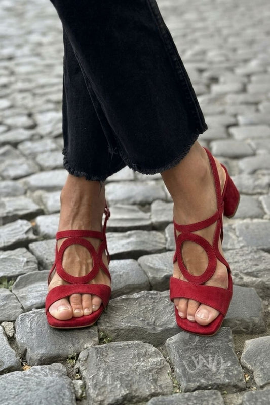 Textured Toe Strap Peep Ankle Stiletto Red Heels
