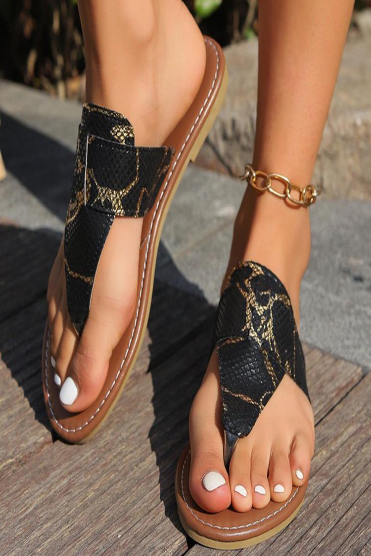 Snake Print Bronzing Patchwork Flip Flops Slippers