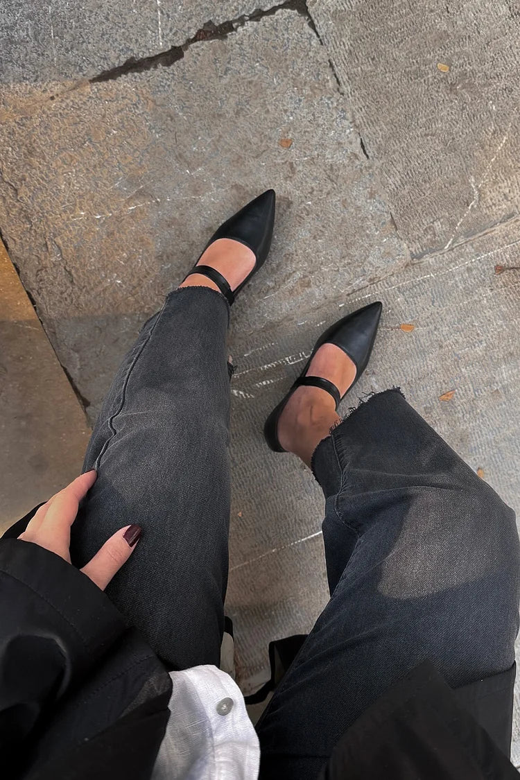 Solid Color Instep Strap Pointed Toe Black Flats [Pre Order]