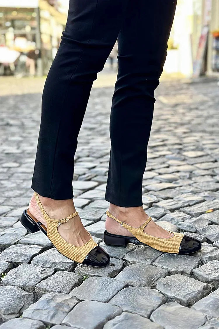 Tacones bajos color caqui con hebilla y tiras en el empeine y punta redonda en bloques de color [pedido por adelantado]