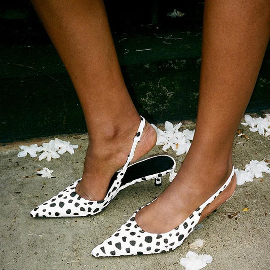 Zapatos de tacón bajo blancos con tira trasera y punta puntiaguda y estampado animal [Pedido anticipado]