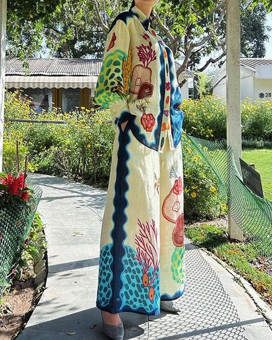 Conjunto de dos piezas con estampado de mundo submarino de moda