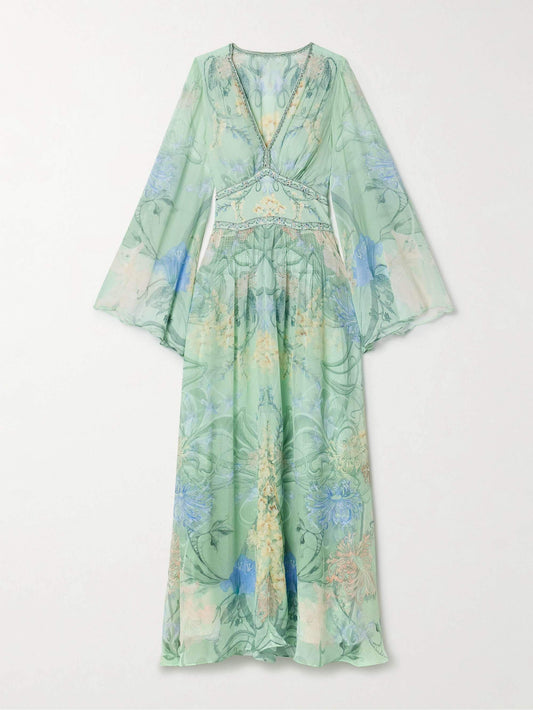 Vestido midi con escote en V y estampado floral fresco y exclusivo
