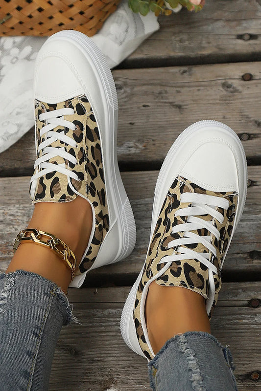 Baskets à lacets patchwork à bout rond et imprimé léopard