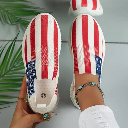Baskets décontractées légères à motif rayé étoile sur imprimé