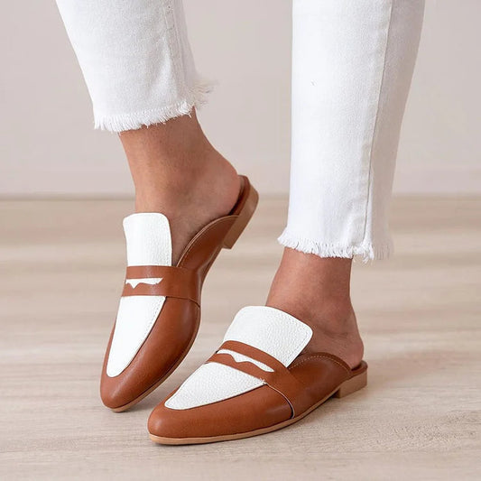Chaussures plates couleur chair à bout pointu et patchwork clouté métallisé