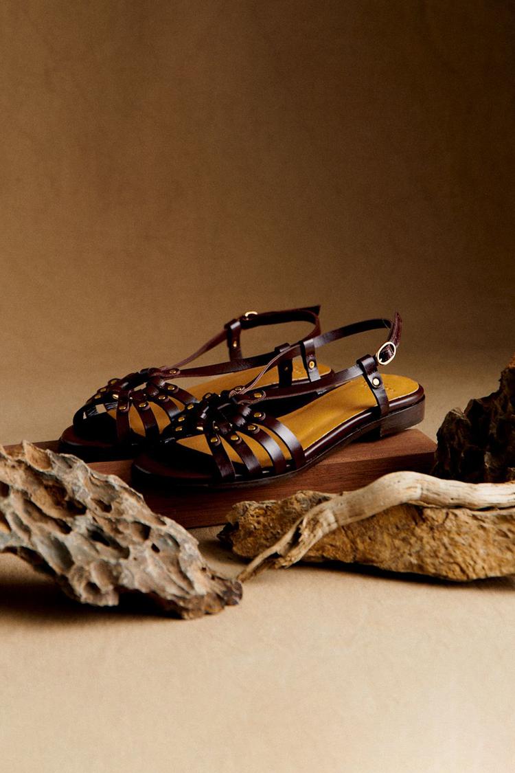 Sandales à bout ouvert ajourées à clous en métal marron foncé