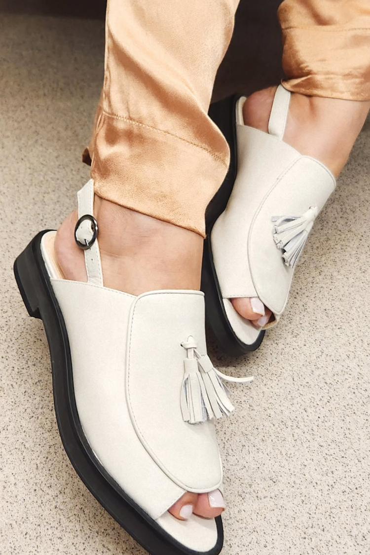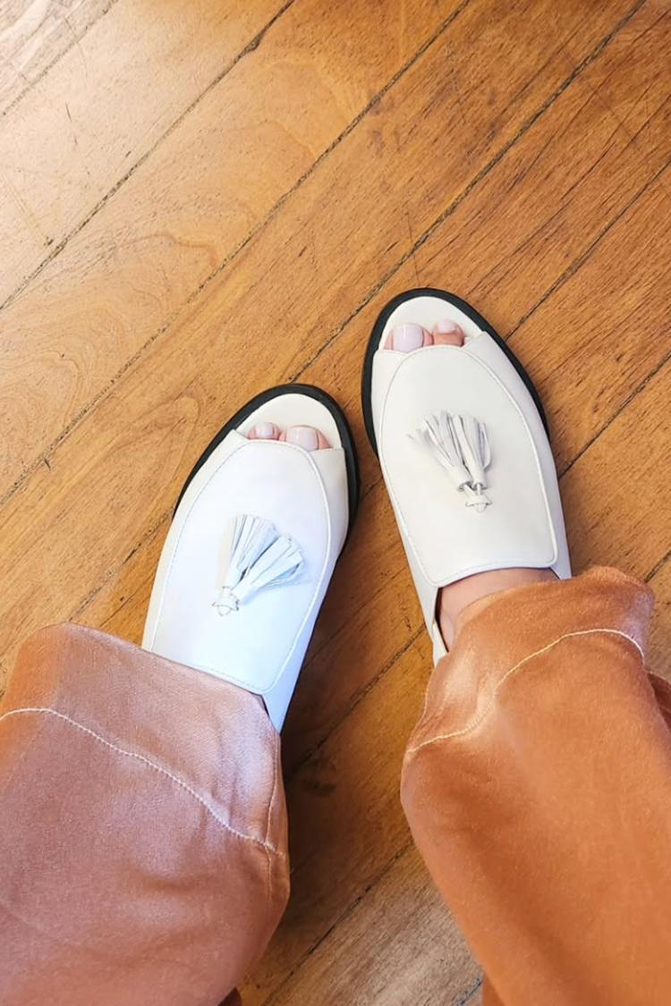 Sandales ivoire à bout ouvert unies avec décor à pampilles [Précommande]