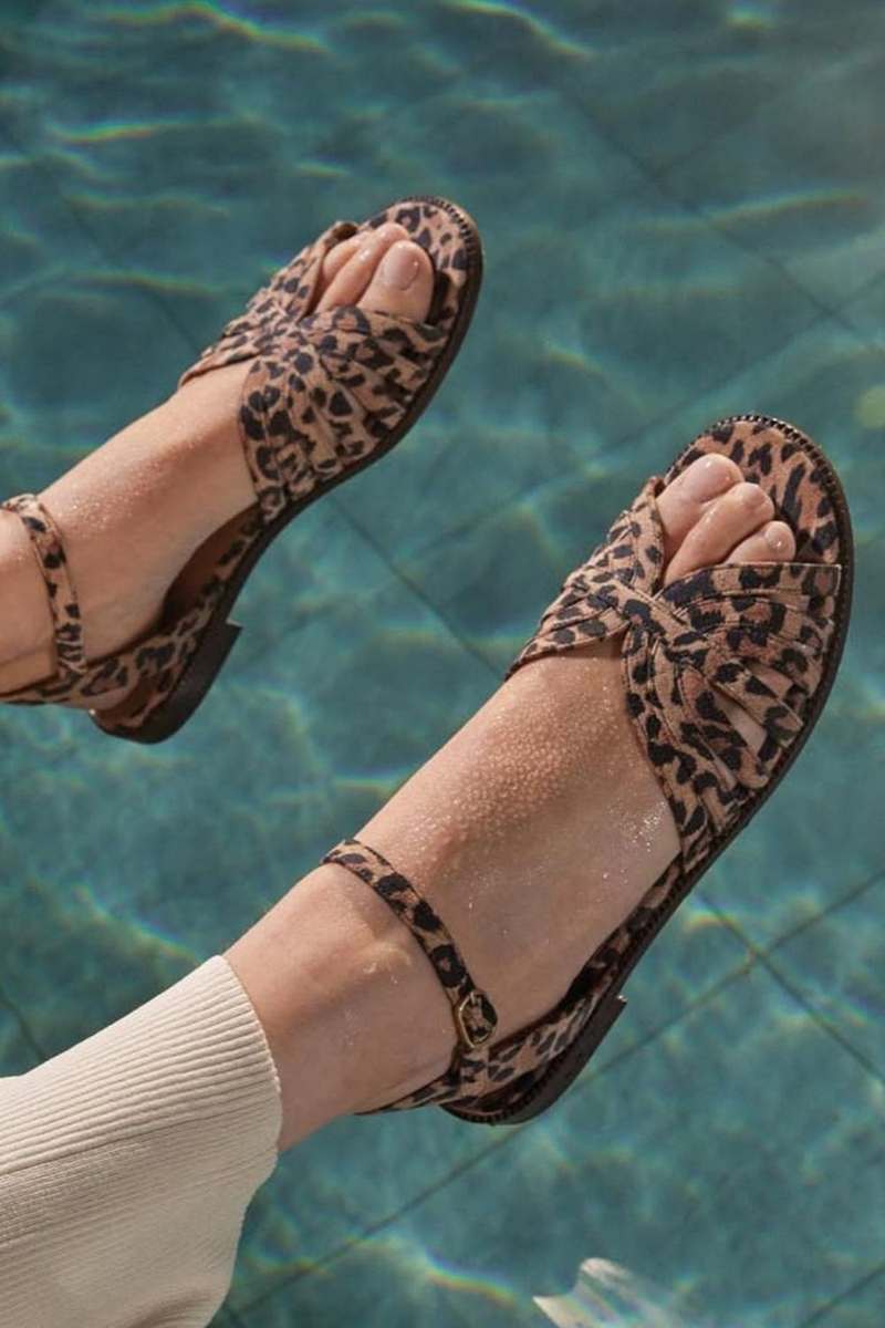Sandales plates à brides croisées imprimé léopard [Précommande])