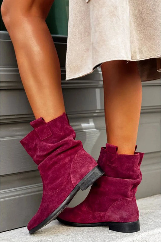 Stivaletti alla caviglia bordeaux con punta tonda e patchwork tinta unita
