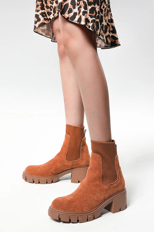 Stivaletti alla caviglia con punta tonda, casual, con tacco spesso e patchwork