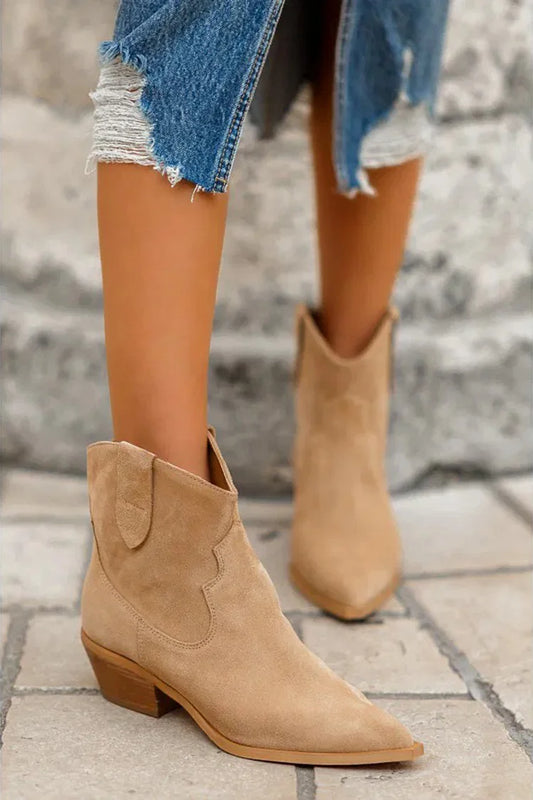 Stivaletti alla caviglia color cachi con tacco spesso e punta patchwork [Pre-ordine]