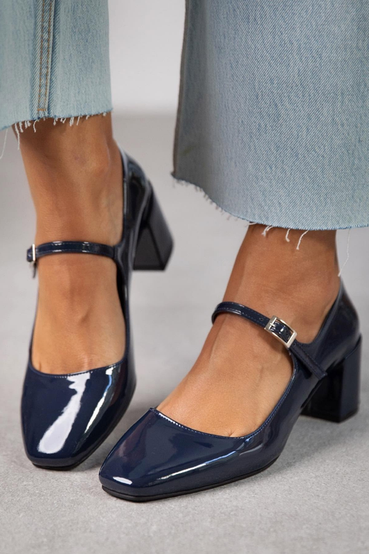 Due cinturini con fibbie, punta tonda, tacchi spessi neri [Pre-ordine]