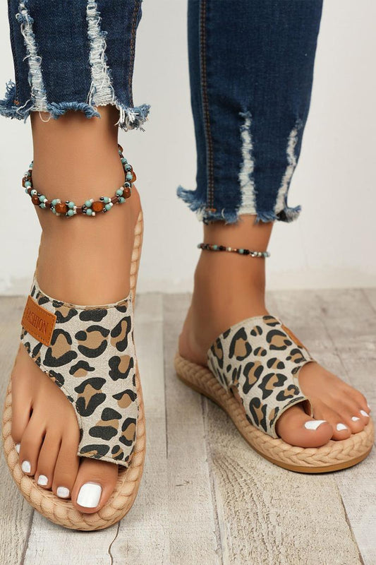 Pantofole casual asimmetriche con anello per le dita dei piedi e motivo leopardato