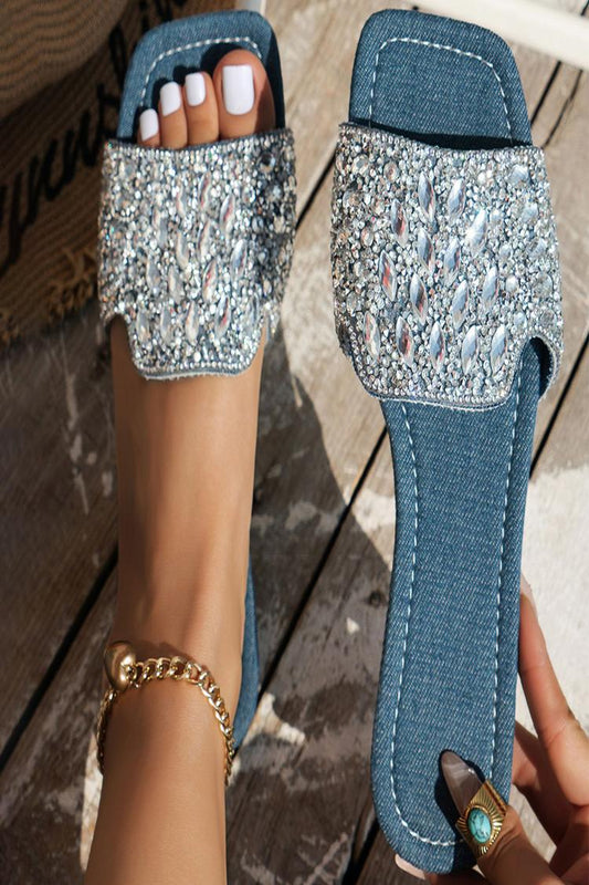Pantofole casual con punta quadrata e decorazioni in strass scintillanti