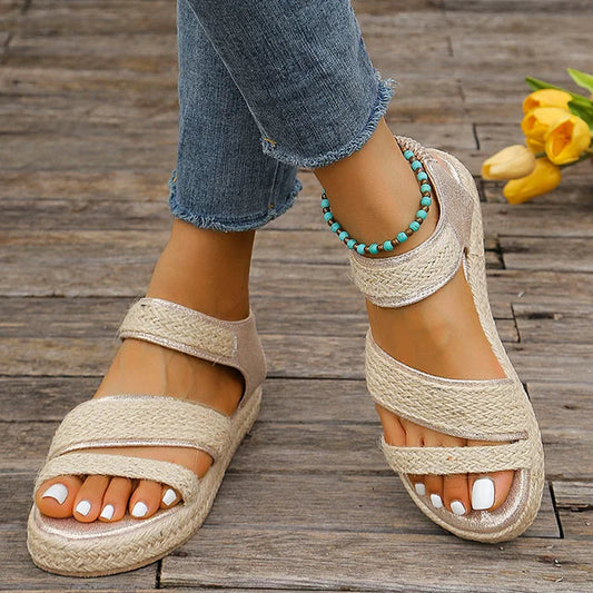 Sandali espadrillas con zeppa e plateau, cinturino con punta aperta e cinturino posteriore