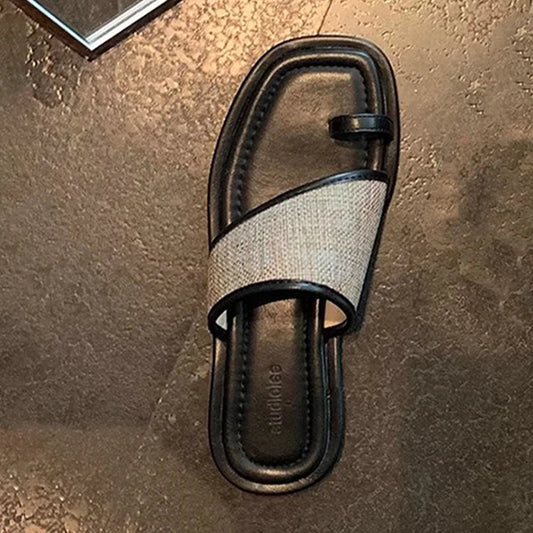Infradito casual semplici con cinturino e fibbia metallica Sandali neri [Preordine]
