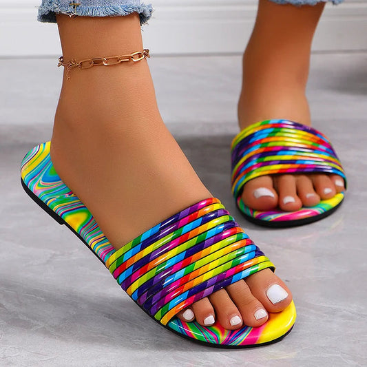 Pantofole con punta rotonda e motivo a righe con stampa colorata di increspature dell'acqua