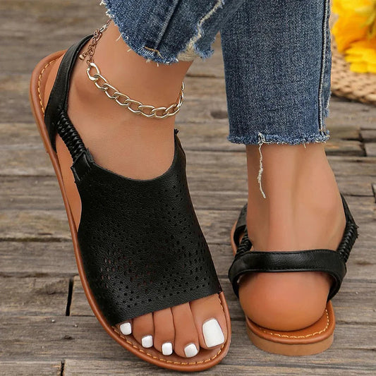 Sandali semplici con punta tonda e cinturino slingback scavato
