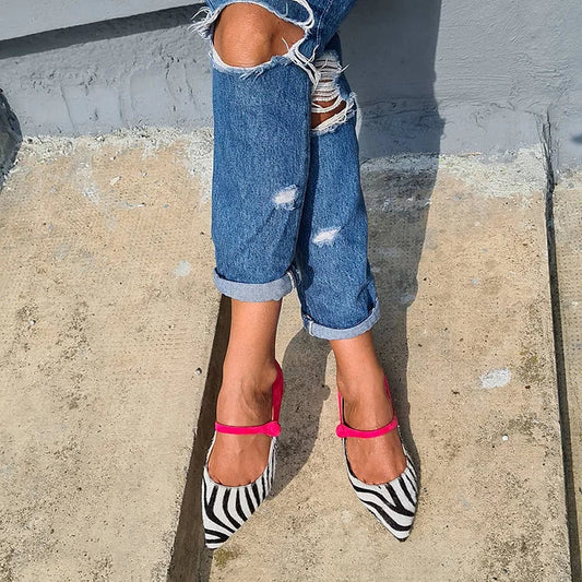 Ballerine casual con cinturini a punta e strisce zebrate colorblock