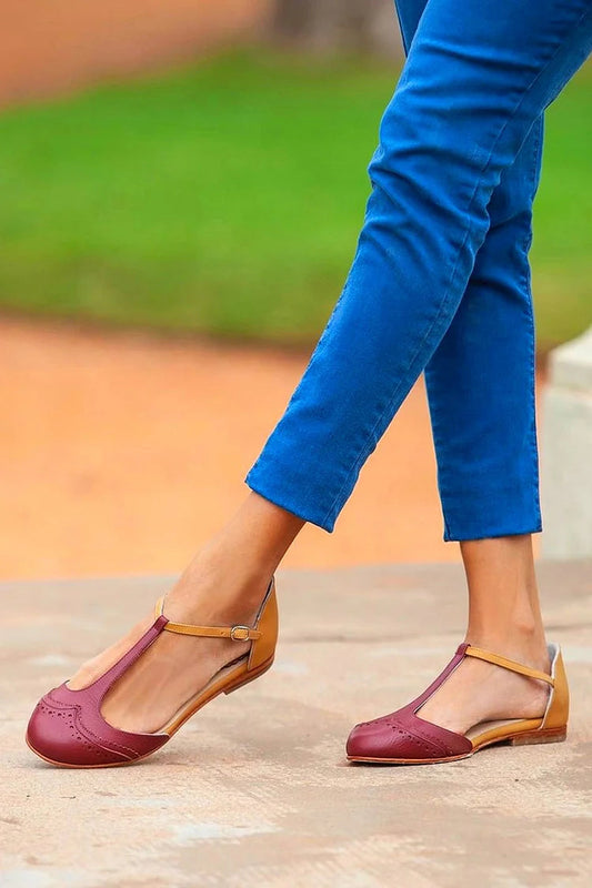 Ballerine bordeaux con fibbia a T e punta tonda color block [Preordine]