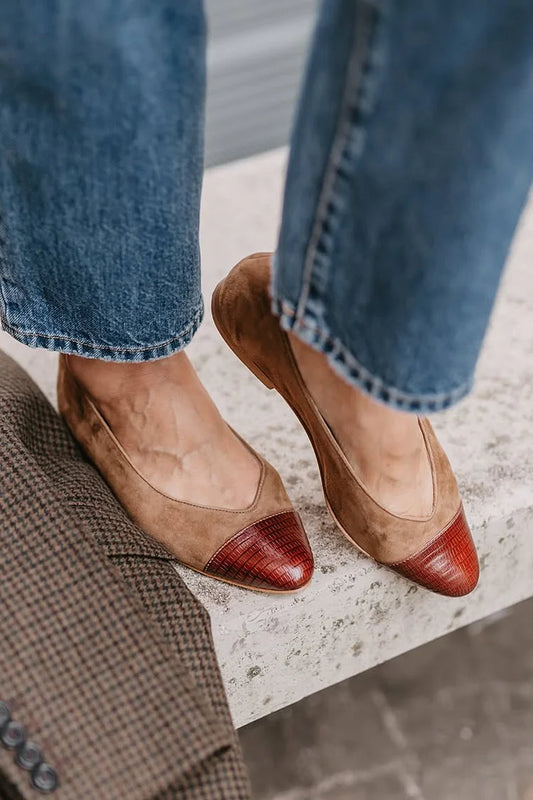 Scarpe basse casual slip-on marroni con punta patchwork [Pre-ordine]