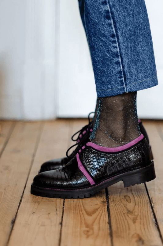 Scarpe basse Oxford con punta a coda di rondine e lacci in vernice metallizzata [Pre-ordine]