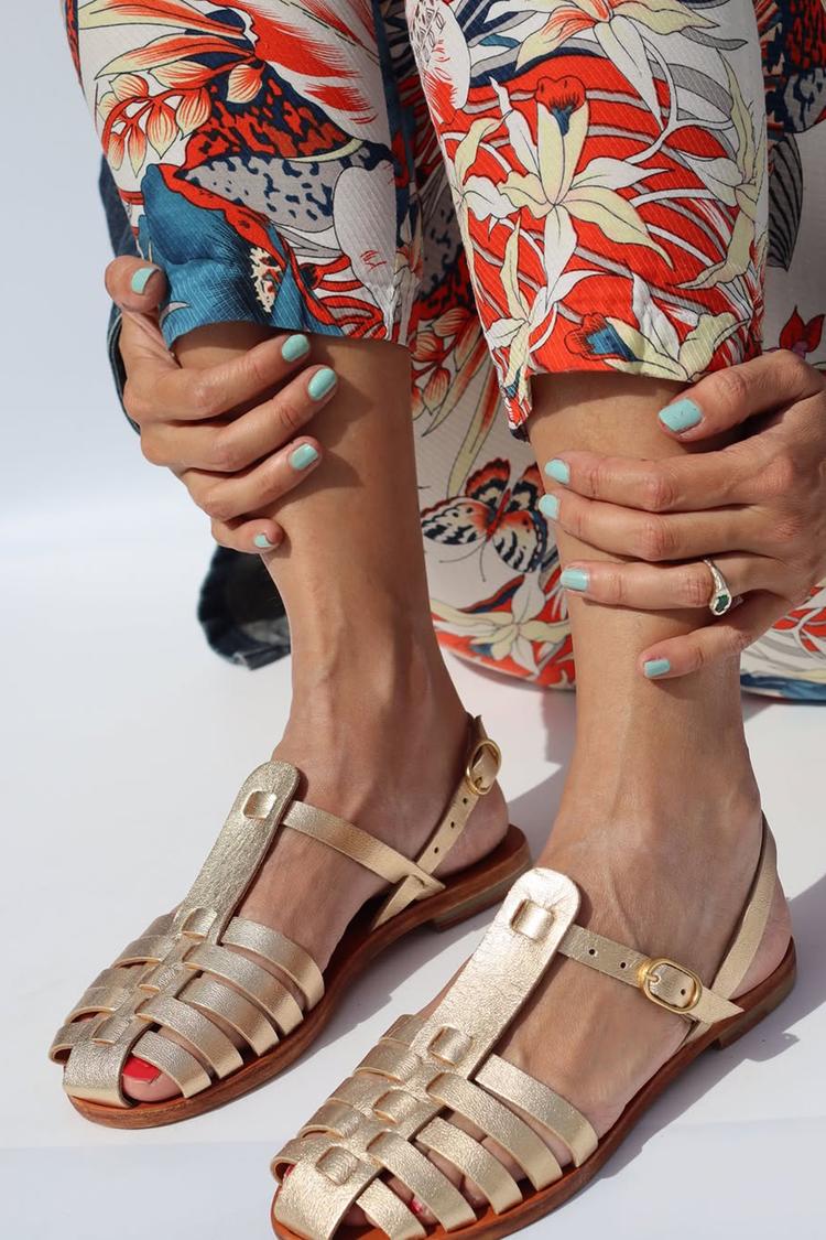 Sandali color champagne con punta tonda traforata e lucentezza metallizzata [Pre-ordine]