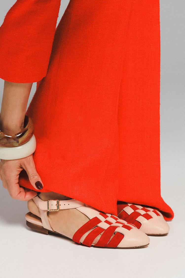 Sandali con cinturino posteriore a punta in tessuto colorblock rosa chiaro [Pre-ordine]