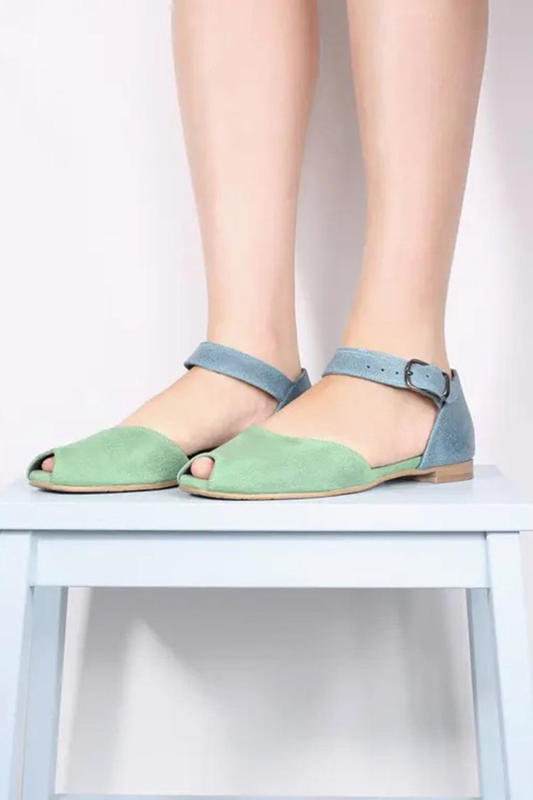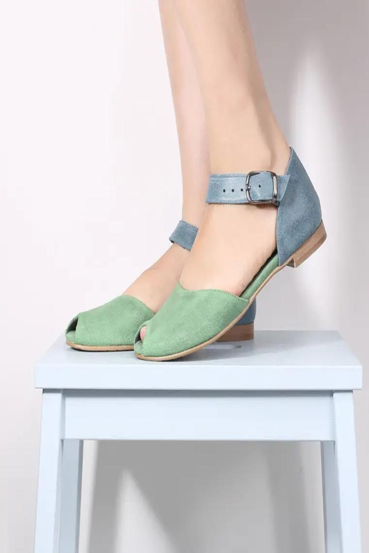 Sandali con cinturino alla caviglia colorblock e fibbia a punta aperta, verdi [Pre-ordine]