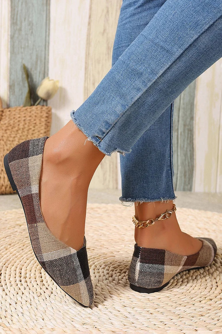 Scarpe basse casual slip-on con punta affilata e motivo scozzese colorblock