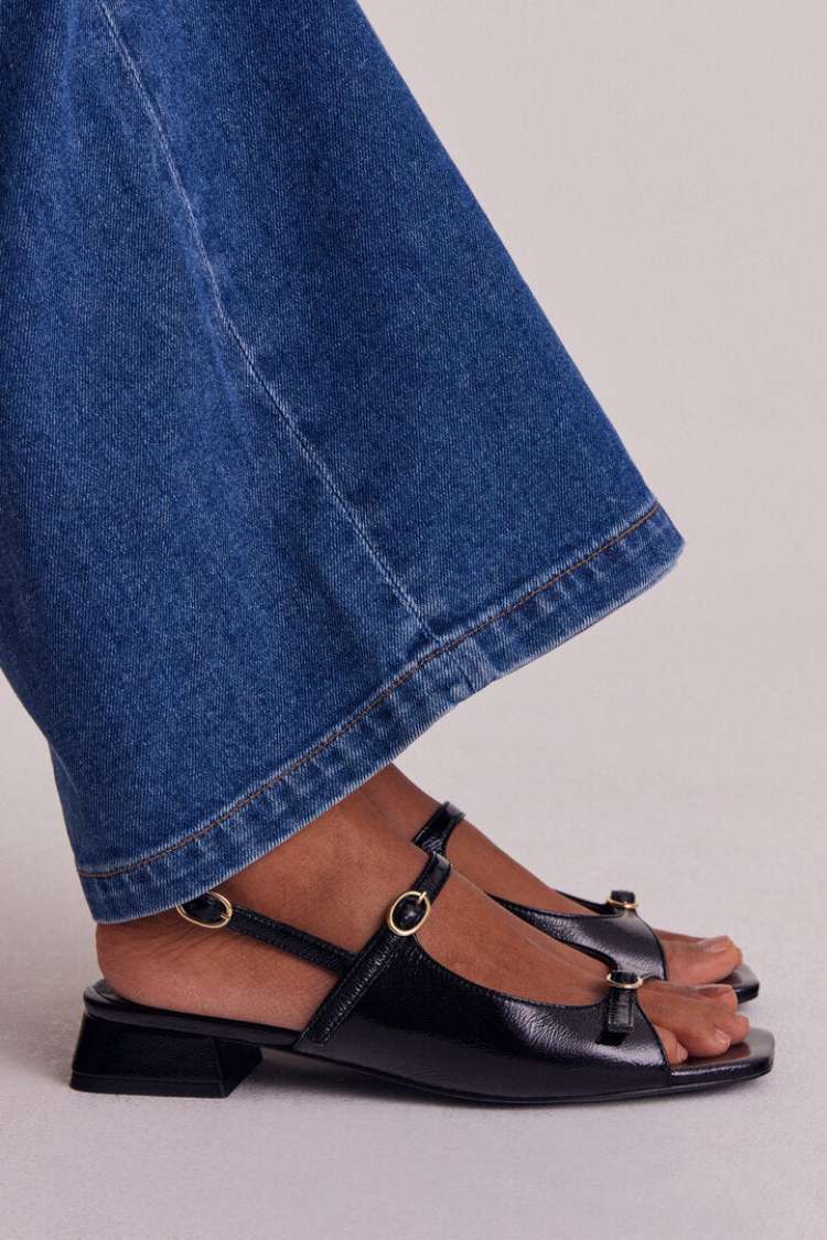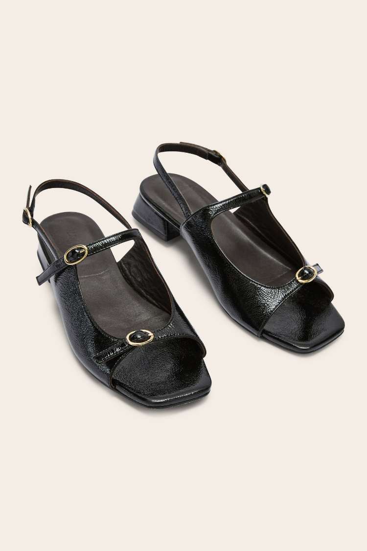 Sandali con tacco a blocco e punta aperta in vernice [Pre-ordine]