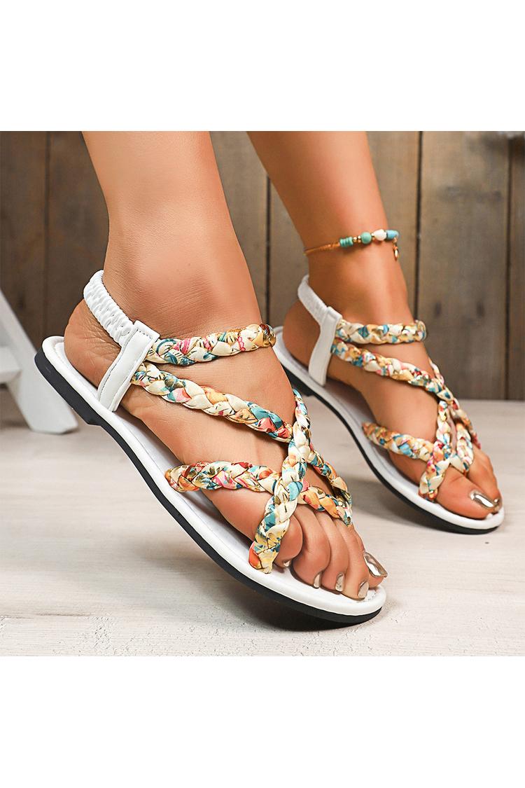 Sandali casual con punta tonda, cinturino incrociato intrecciato e stampa multicolore