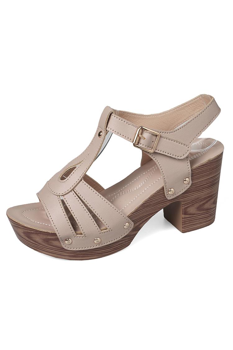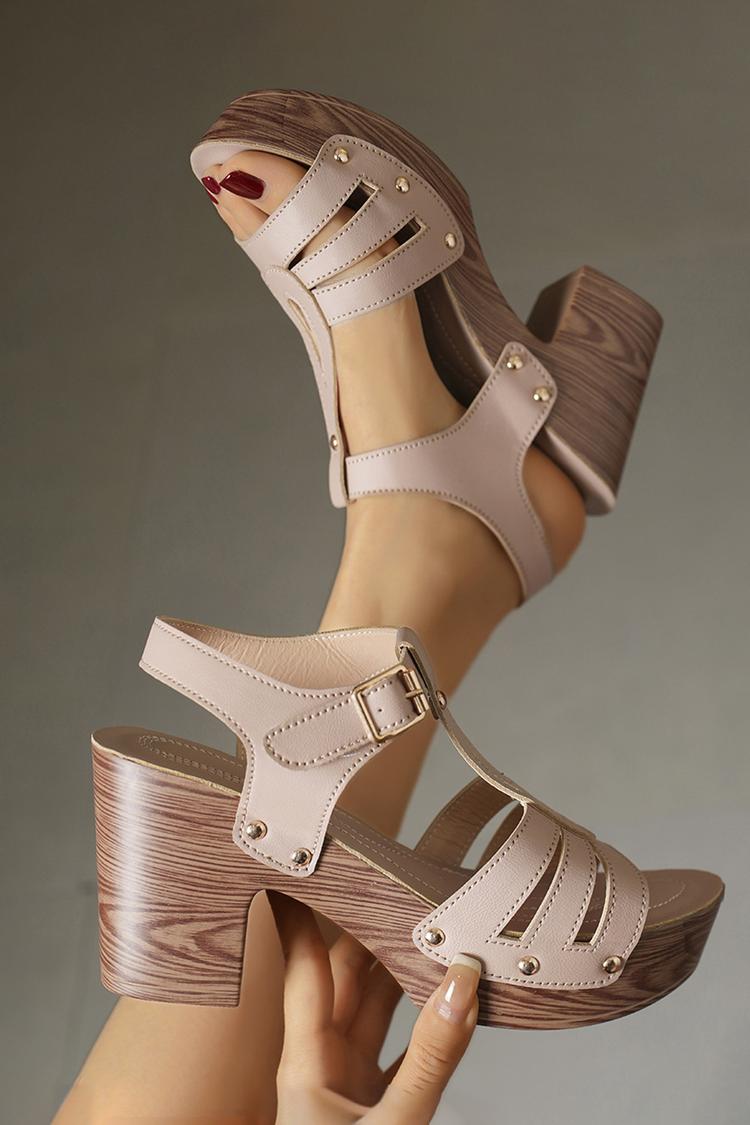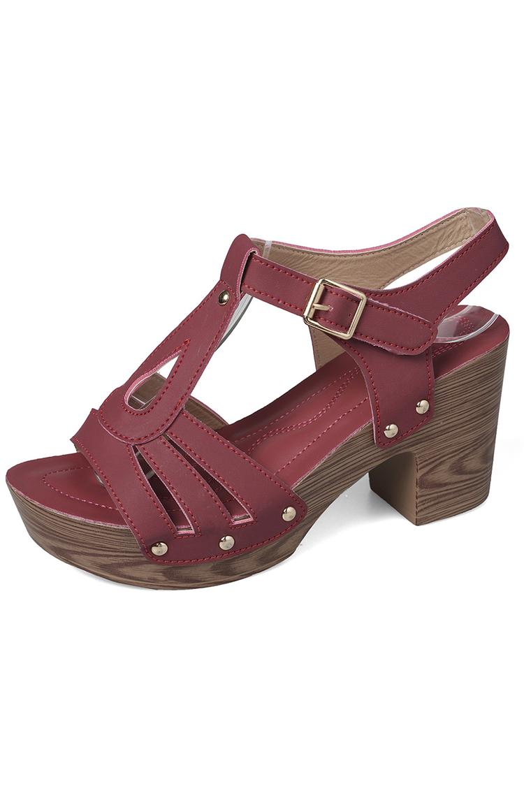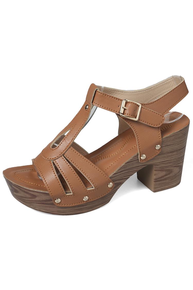 Tacchi bassi casual con cinturino marrone e fibbia chunky