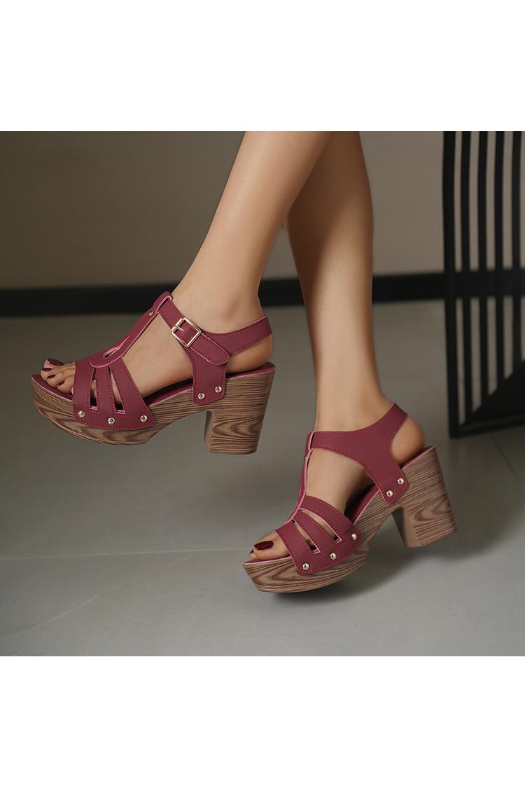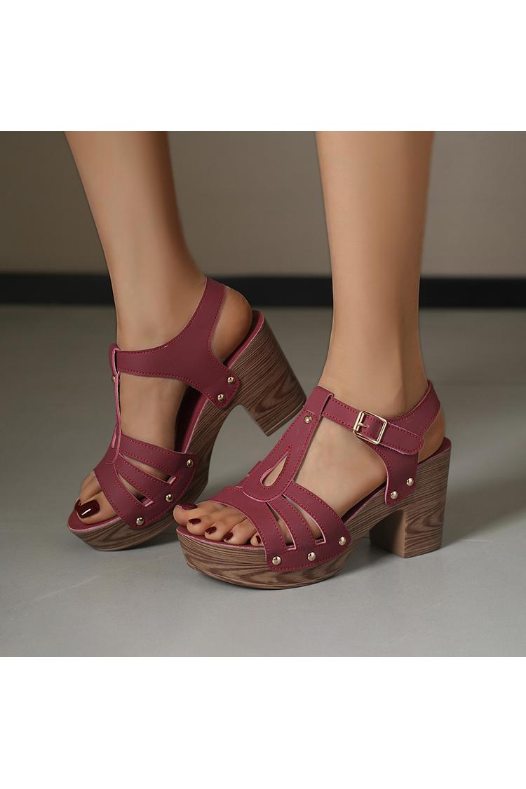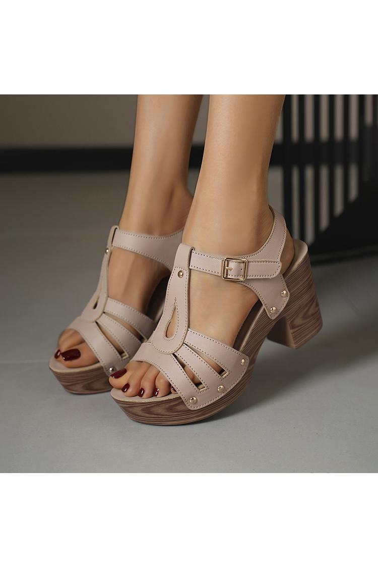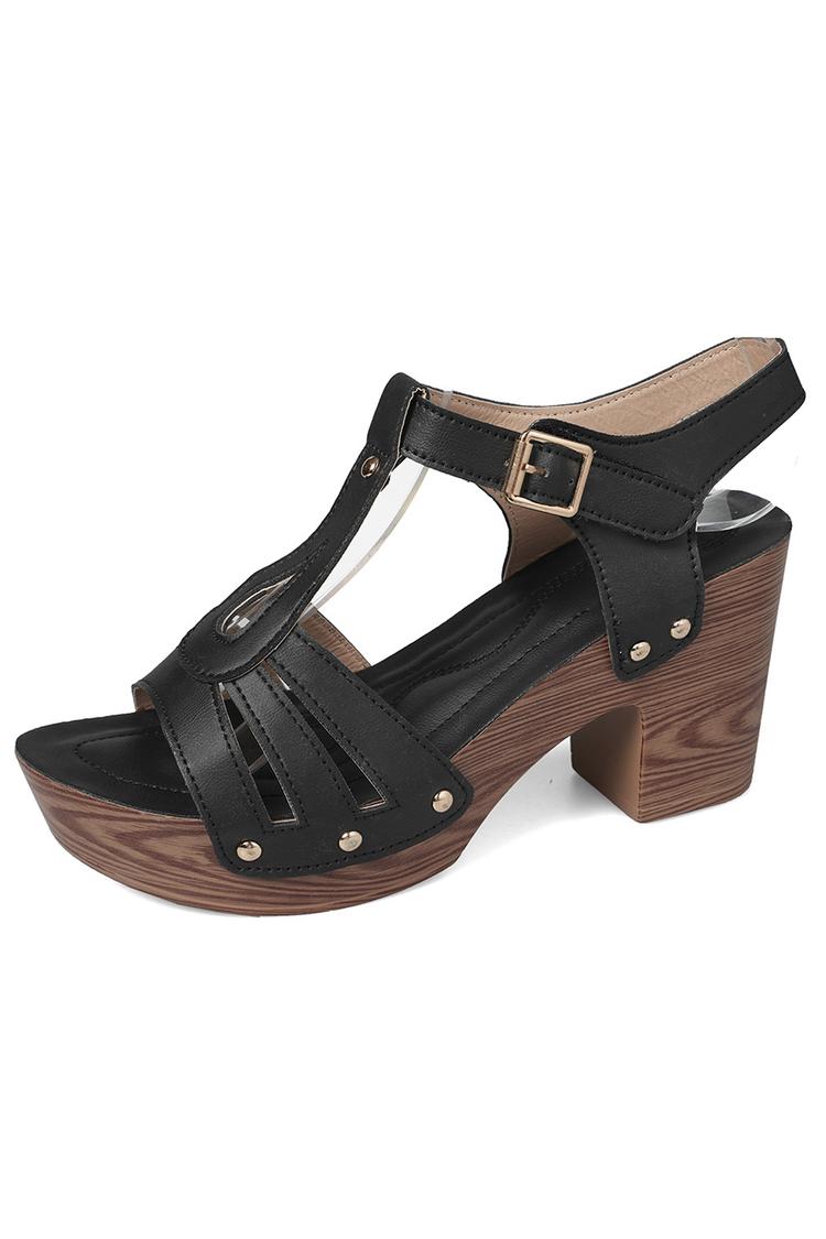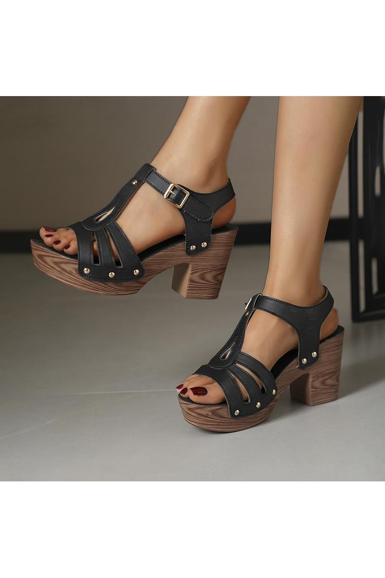 Tacchi bassi casual con cinturino marrone e fibbia chunky