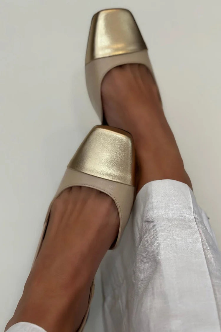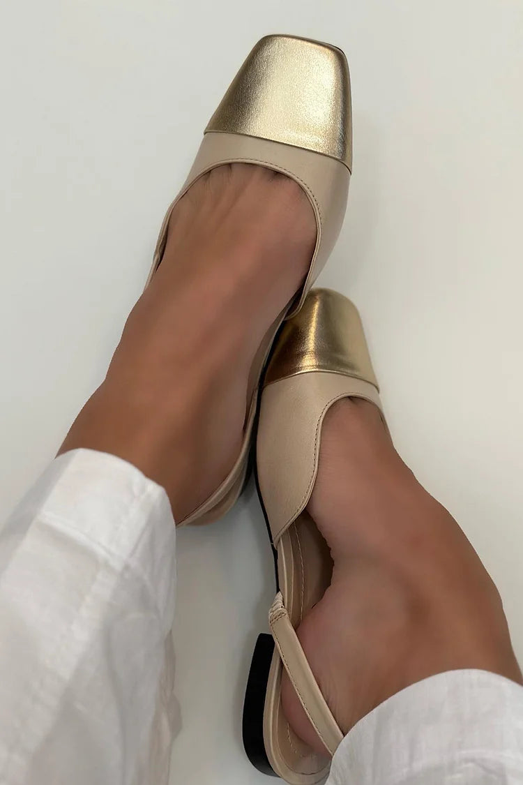 Ballerine color block con cinturino posteriore e punta quadrata color kaki con lucentezza metallizzata [Pre-ordine]