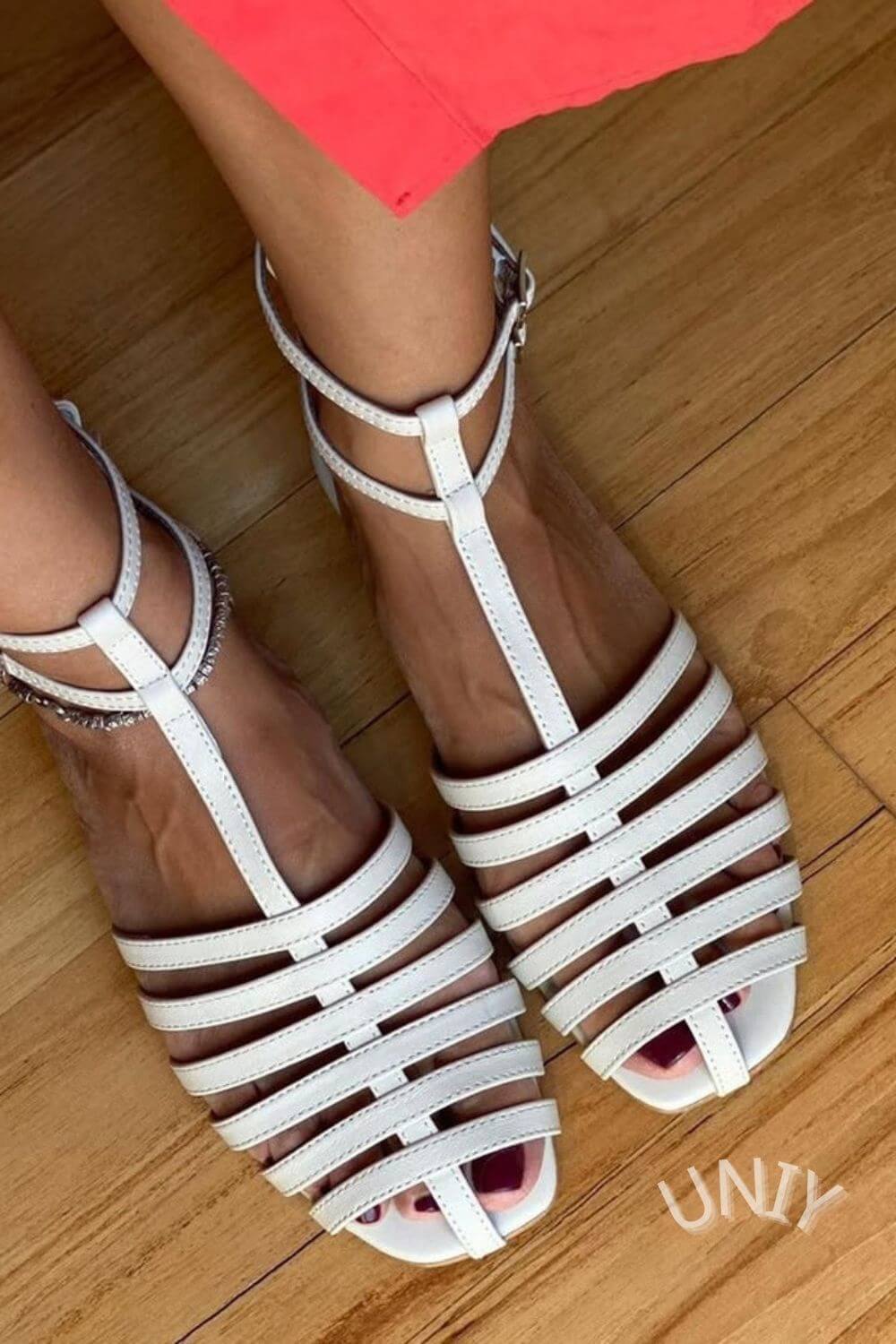 Sandali gladiatore bassi con cinturini alla caviglia e fibbia [Pre-ordine]