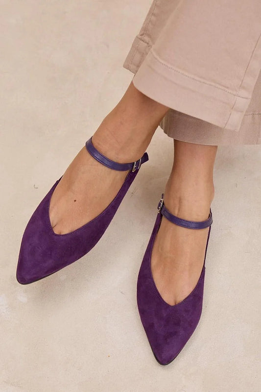 Scarpe basse viola con cinturino alla caviglia e fibbia, tinta unita, punta affilata [Pre-ordine]