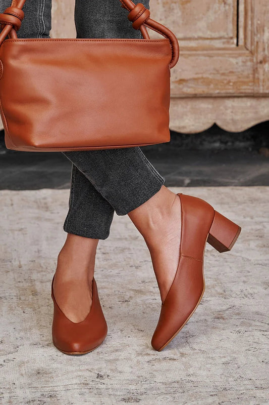 Tacco grosso marrone retrò a punta tinta unita [Preordine]