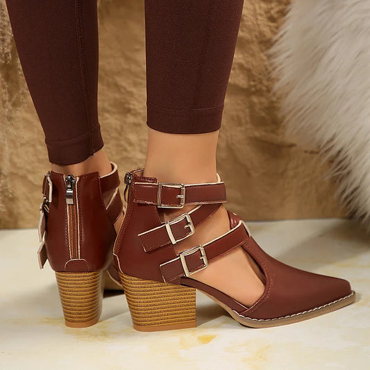 Stivaletti alla caviglia strutturati con due cinturini, fibbie, punta rotonda e cerniera tinta unita
