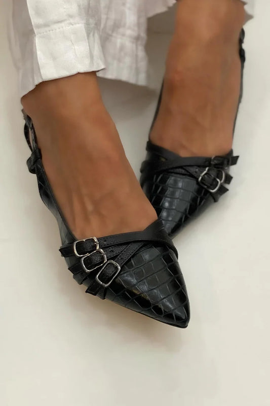 Scarpe con tacco a spillo nere con punta affilata e stampa coccodrillo [Pre-ordine]