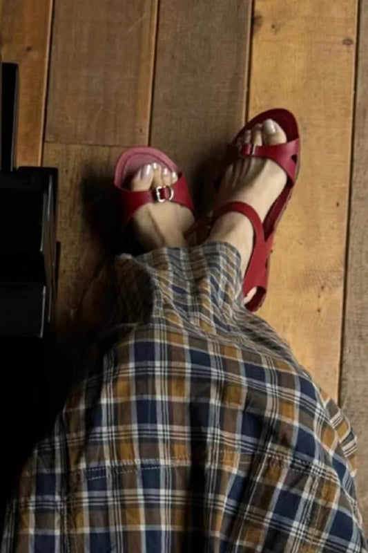 Sandali aperti minimalisti con ritagli geometrici slip-on [Pre-ordine]
