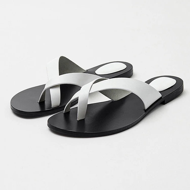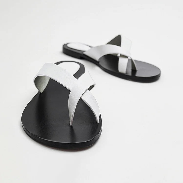 Ciabatte casual in pelle con punta rotonda e cinturino incrociato