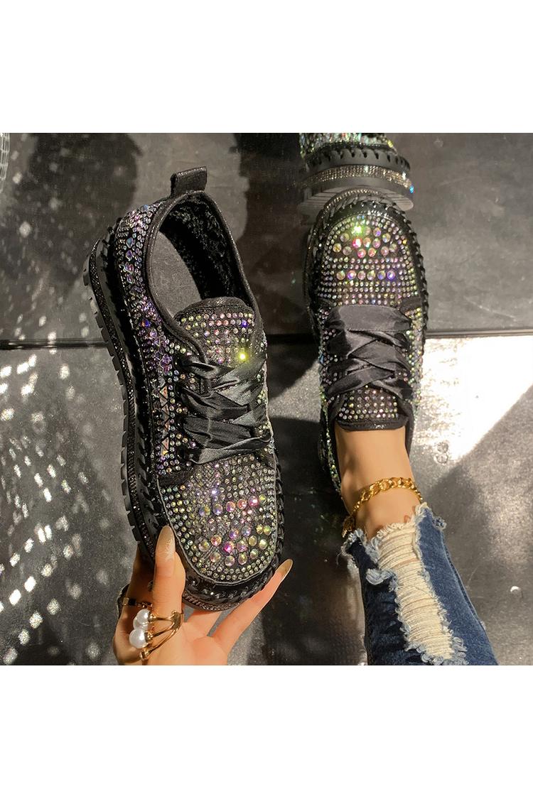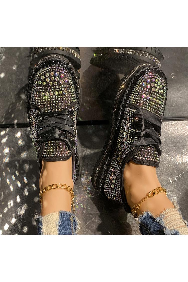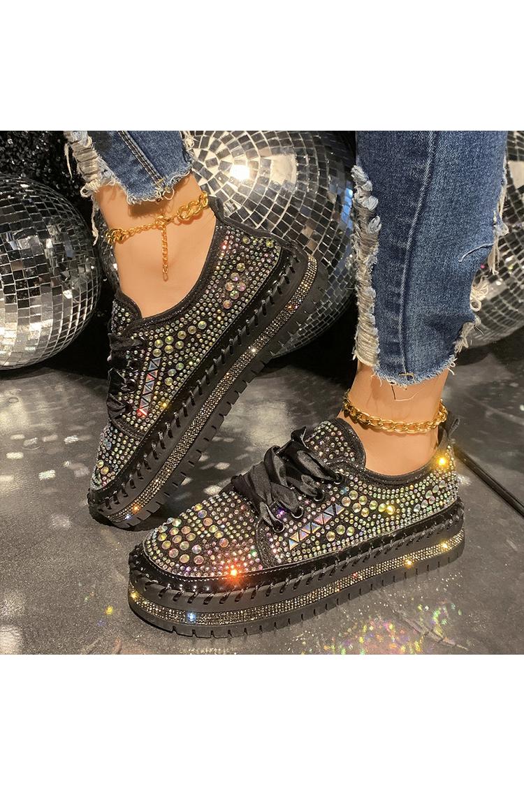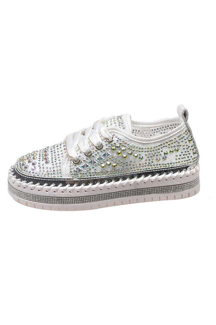Sneakers casual con plateau e lacci, punta rotonda, decorazioni geometriche in strass