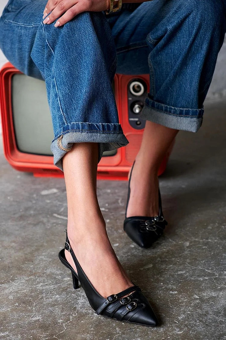 Scarpe con tacco a spillo nere con cinturini e fibbie a punta [Pre-ordine]
