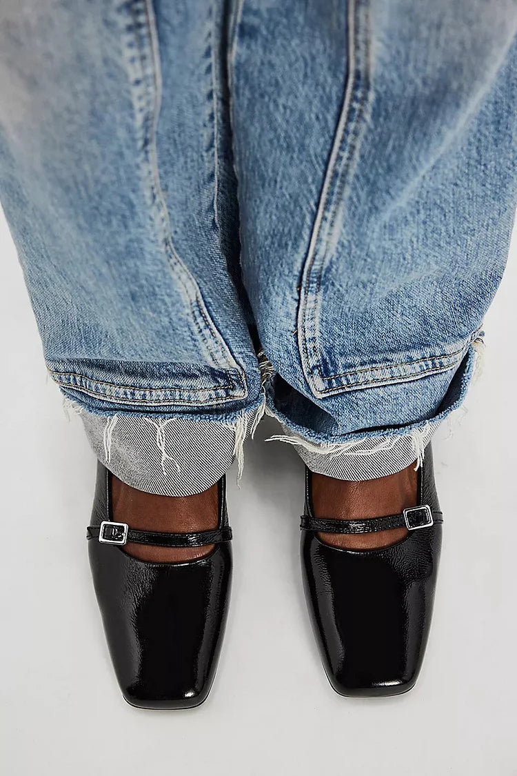 Ballerine con punta quadrata morbida e fibbia quadrata in velluto