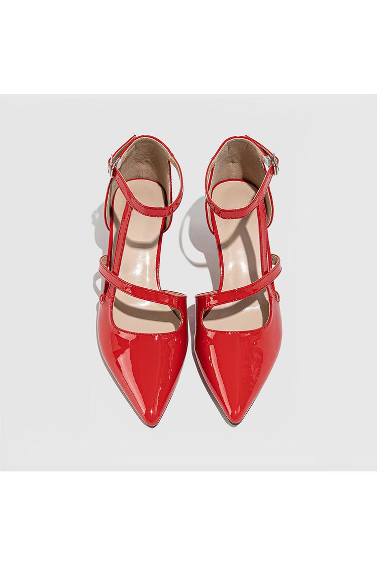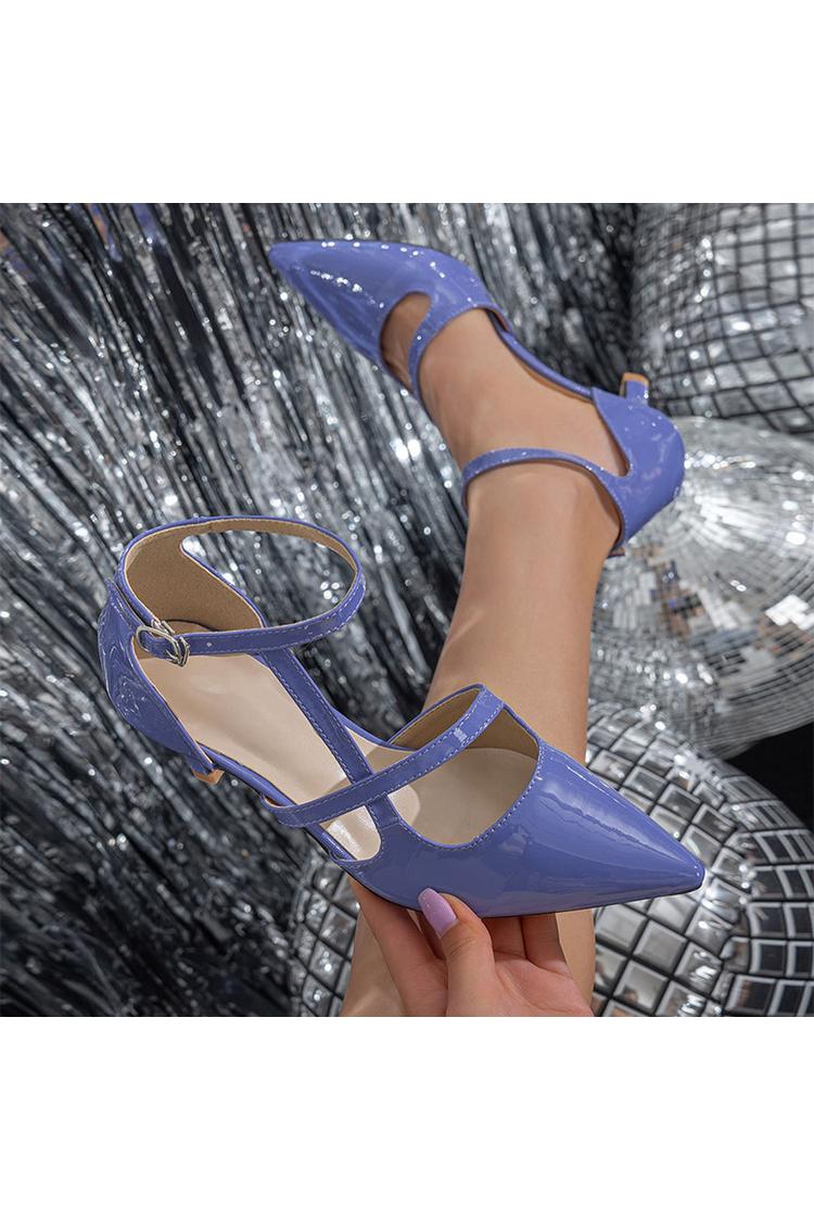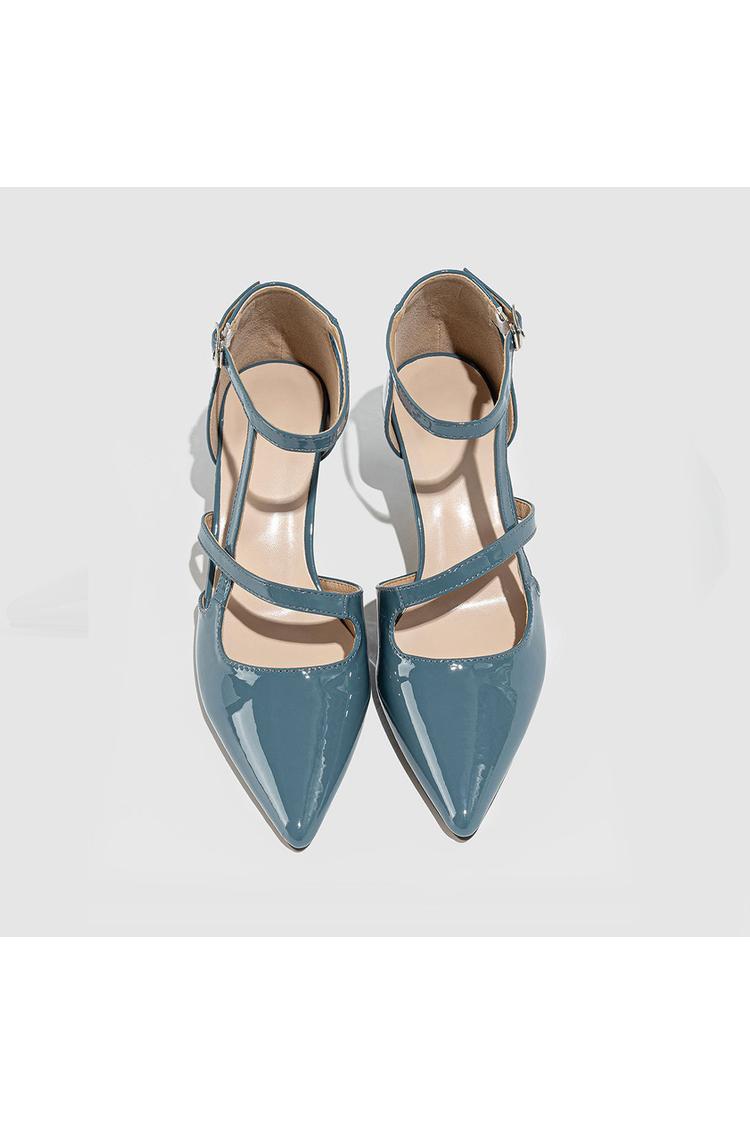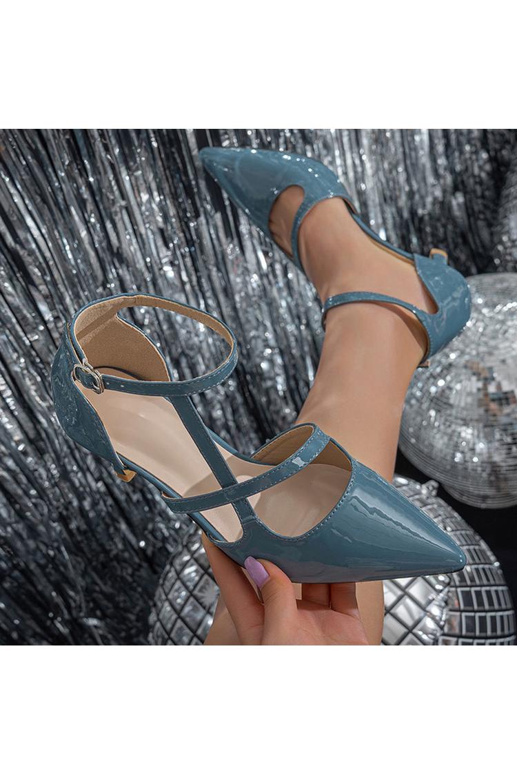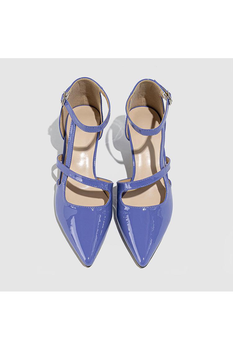 Scarpe con tacco a spillo a punta, con cinturino alla caviglia incrociato irregolare, tinta unita e fibbia