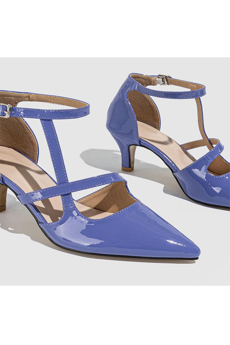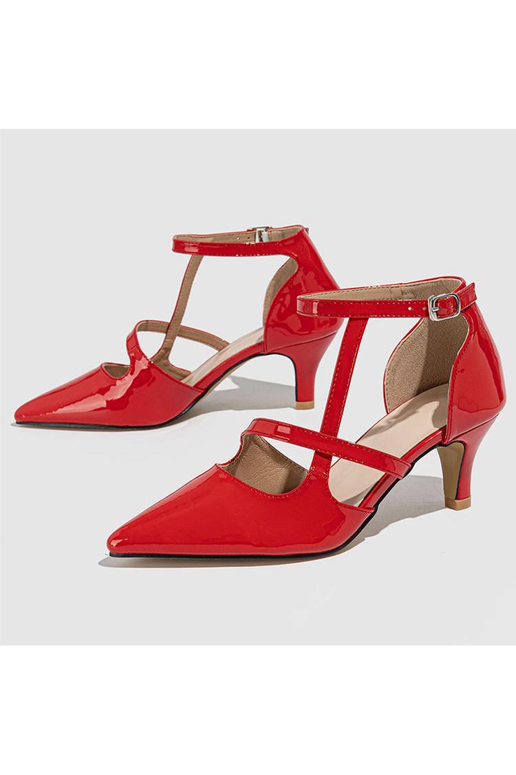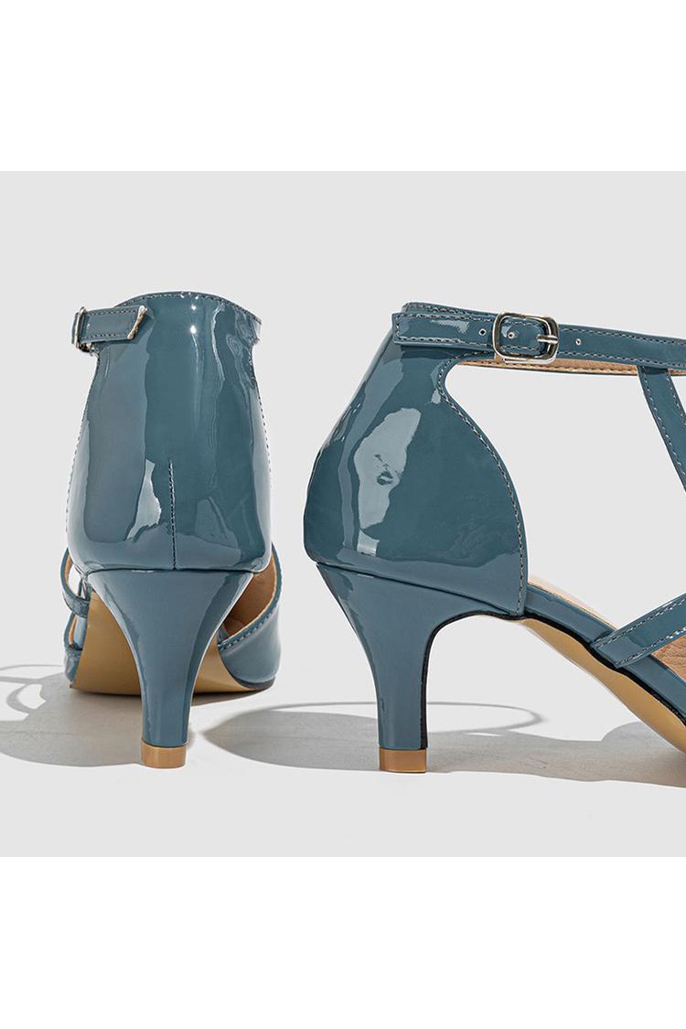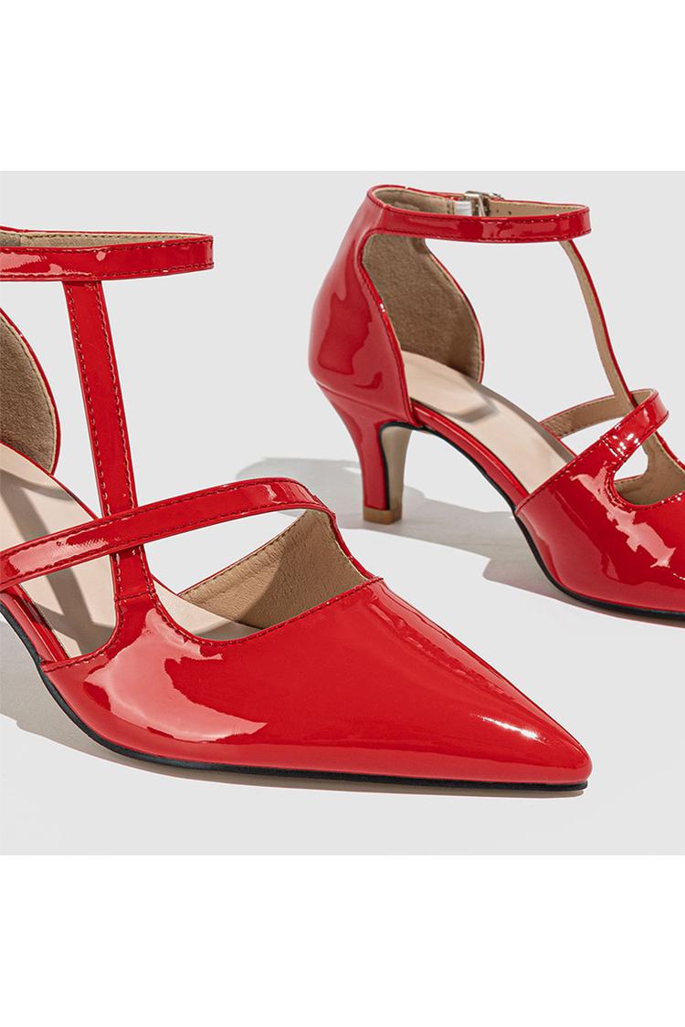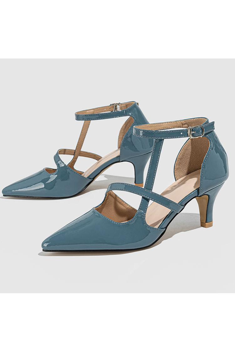 Scarpe con tacco a spillo a punta, con cinturino alla caviglia incrociato irregolare, tinta unita e fibbia